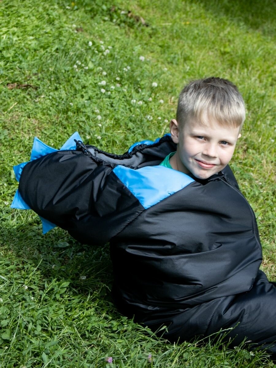 Купить Туристический спальник для подростков, рост до 150 см, черно-синий, на флисе и синтепоне с доставкой по всей России.