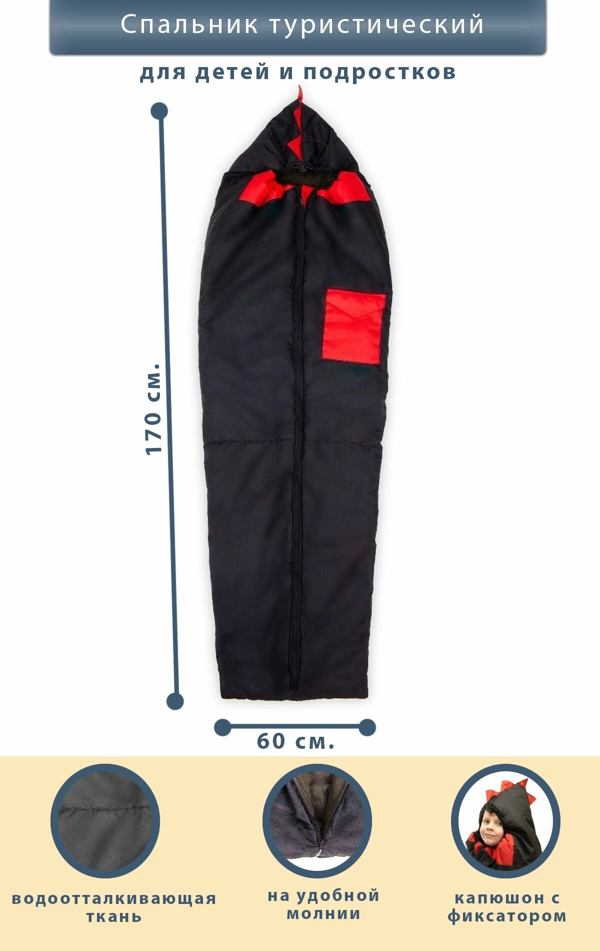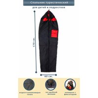 Туристический спальный мешок детский, черный с красной отделкой, рост до 150 см, утепленный синтепоном, на флисе: сравнение цен, характеристики, фото, актуальное наличие и цены.