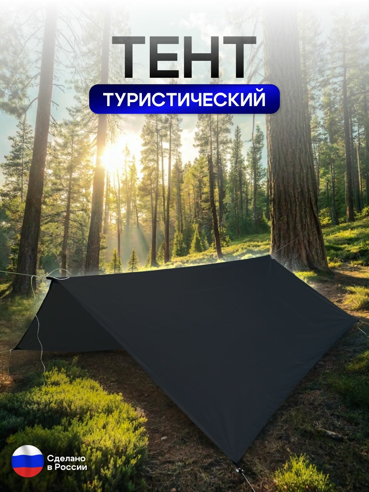 Купить Туристический водонепроницаемый тент 3х3, черный с доставкой по всей России.