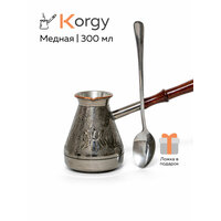 Купить Турка для кофе Korgy медная джезва 300 мл с ложкой в надежной упаковке с доставкой по всей России.
