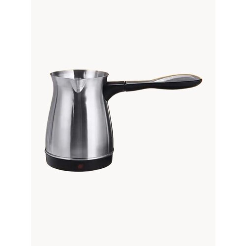 Турка электрическая для кофе металлическая со съемной ручкой, стальной корпус, световой индикатор работы, автоотключение при отсутствии воды, закрытый нагревательный элемент. Полный внутренний объём турки составляет 700 мл, что позволяет за один цикл приготовить до 600 мл горячего напитка. Электротурка для кофе позволяет готовить любимый напиток без кофемашины не только дома, но и в любом удобном месте. С ее помощью Вы сможете быстро приготовить вкусный и бодрящий кофе и насладится его неповторимым вкусом и ароматом, а стильный эргономичный дизайн кофеварки прекрасно подойдет к любому кухонному интерьеру. Аромат и вкус свежесваренного кофе гарантирован! Кофеварка идеально дополнит интерьер вашей квартиры, комнаты, кухонной гарнитуры столешницы! В отличии от медной турки, кофейная турка проста в использовании: она оснащена всего одним переключателем, отвечающим за подачу электричества на нагревательный элемент. Турка для кофе легко очищается от кофейного налета и накипи, а также сохраняет приятный вкус напитка. Длинная пластиковая ручка помогает надежно удерживать турку при разливе напитка, а носик особой формы не допускает расплескивания жидкости. Благодаря компактным размерам кофеварка не занимает много места на кухне, а также её удобно брать в поездку, на дачу, отпуск или командировку. Мощный закрытый нагревательный элемент поможет быстро приготовить кофе, полностью раскрыв вкус и тонизирующие свойства. В турке также можно готовить чай и травяные отвары или кипятить воду, при этом, удобная термостойкая ручка убережет от ожогов.