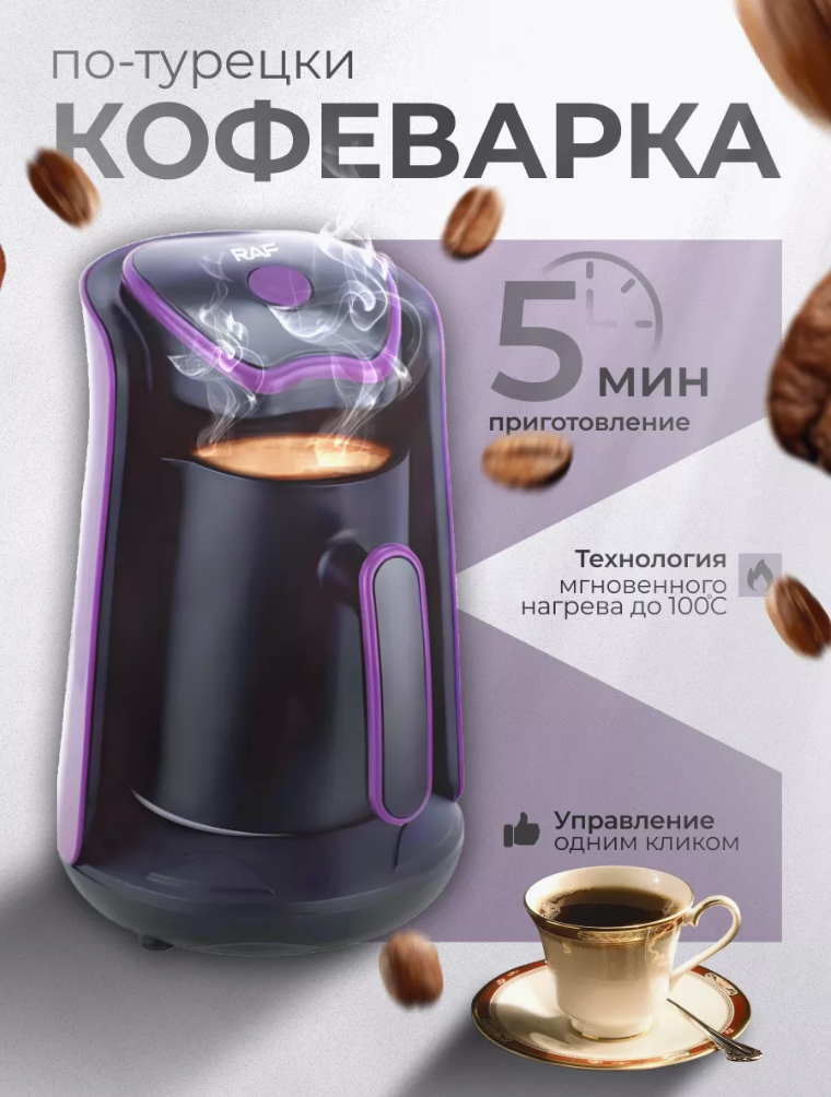 Купить Турка электрическая гейзерная капельная кофеварка RAF R.102S, фиолетовая с доставкой по всей России. Турка электрическая гейзерная капельная кофеварка RAF R.102S, фиолетовая: сравнение цен, характеристики, фото, актуальное наличие и цены.