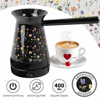 Купить Турка электрическая HOTTER с автоподогревом и смарт-контролем, чёрная с дизайном «Цветы» с доставкой по всей России.