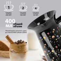 Турка электрическая HOTTER с автоподогревом и смарт-контролем, чёрная с дизайном «Цветы»: сравнение цен, характеристики, фото, актуальное наличие и цены.