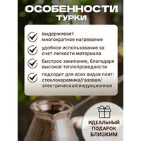 Такая джезва станет прекрасным подарком для ваших близких. Турку можно использовать с любого вида плитами, в том числе она подходит для индукционной плиты! Также можно варить кофе на песке!