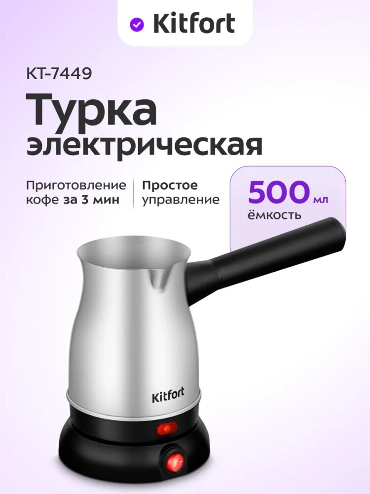 Купить Турка Kitfort KT-7449, сталь, электрическая, 8 порций, 0.5 л с доставкой по всей России. Турка Kitfort KT-7449, сталь, электрическая, 8 порций, 0.5 л: сравнение цен, характеристики, фото, актуальное наличие и цены.