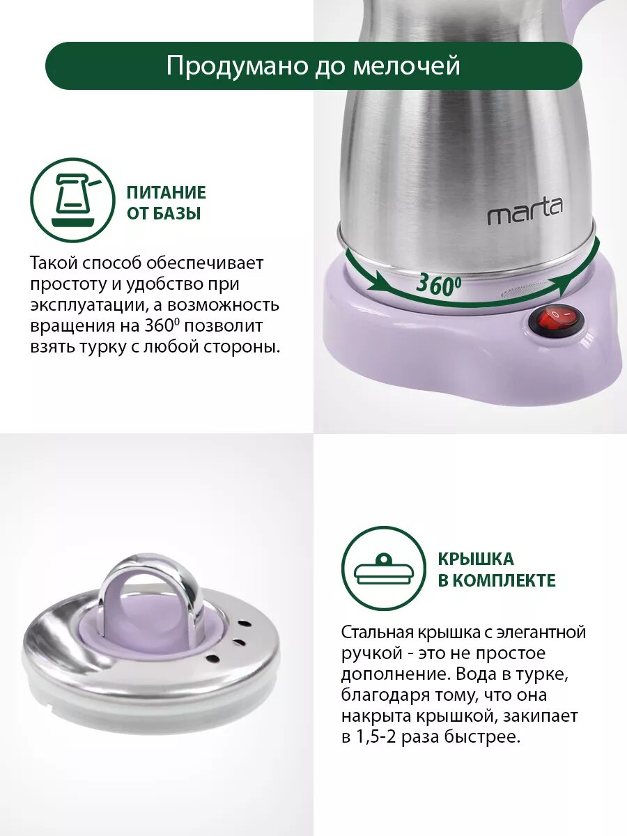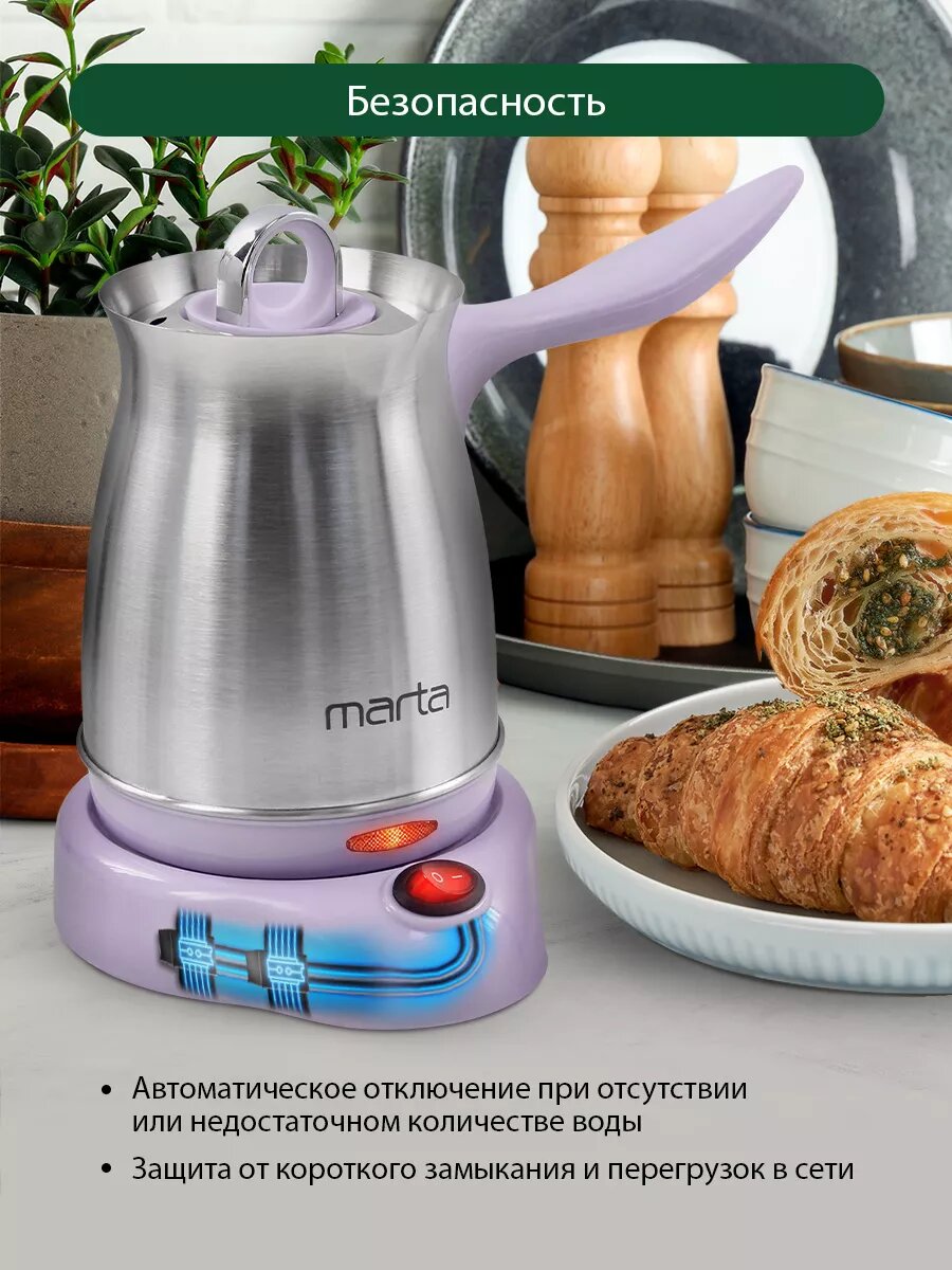 Электрическая турка MARTA MT-2142, лиловый аметист, 400 Вт, 500 мл: сравнение цен, характеристики, фото, актуальное наличие и цены.