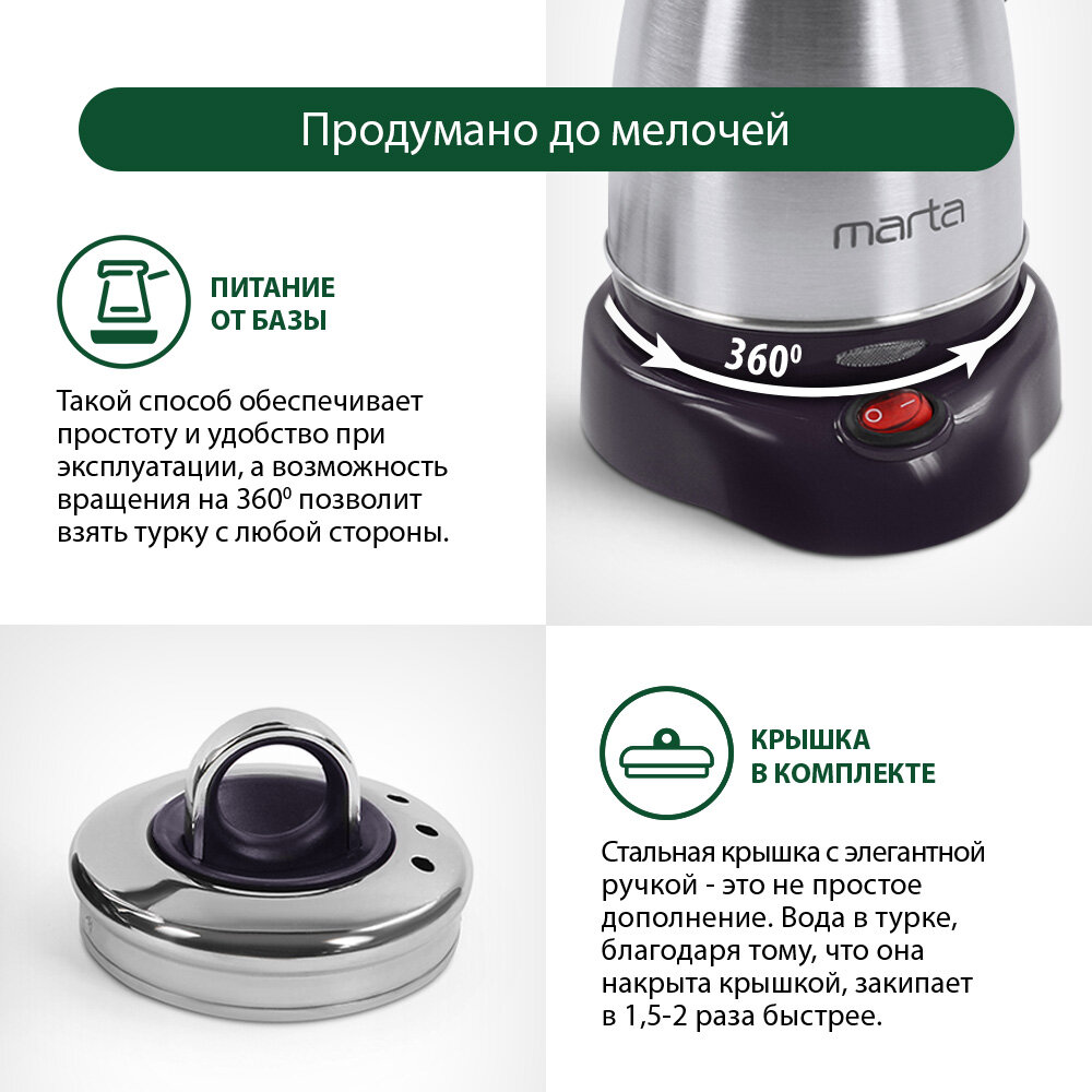 Электрическая турка MARTA МТ-2142, для кофе по-турецки, 500мл