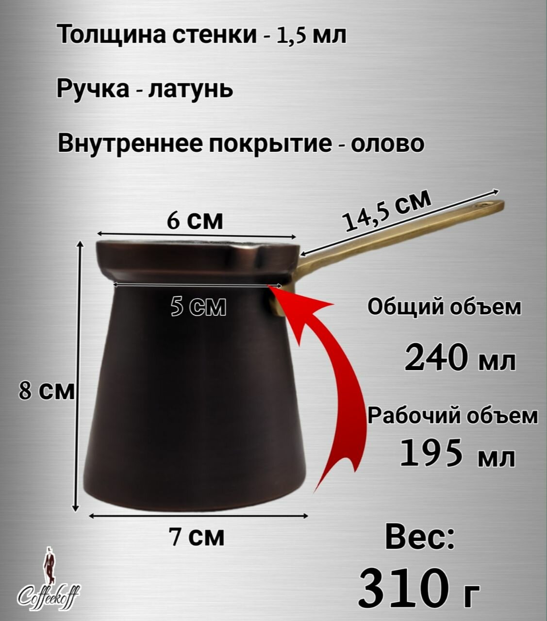 Прекрасно подойдет для варки кофе по-восточному на песке или газовой горелке.