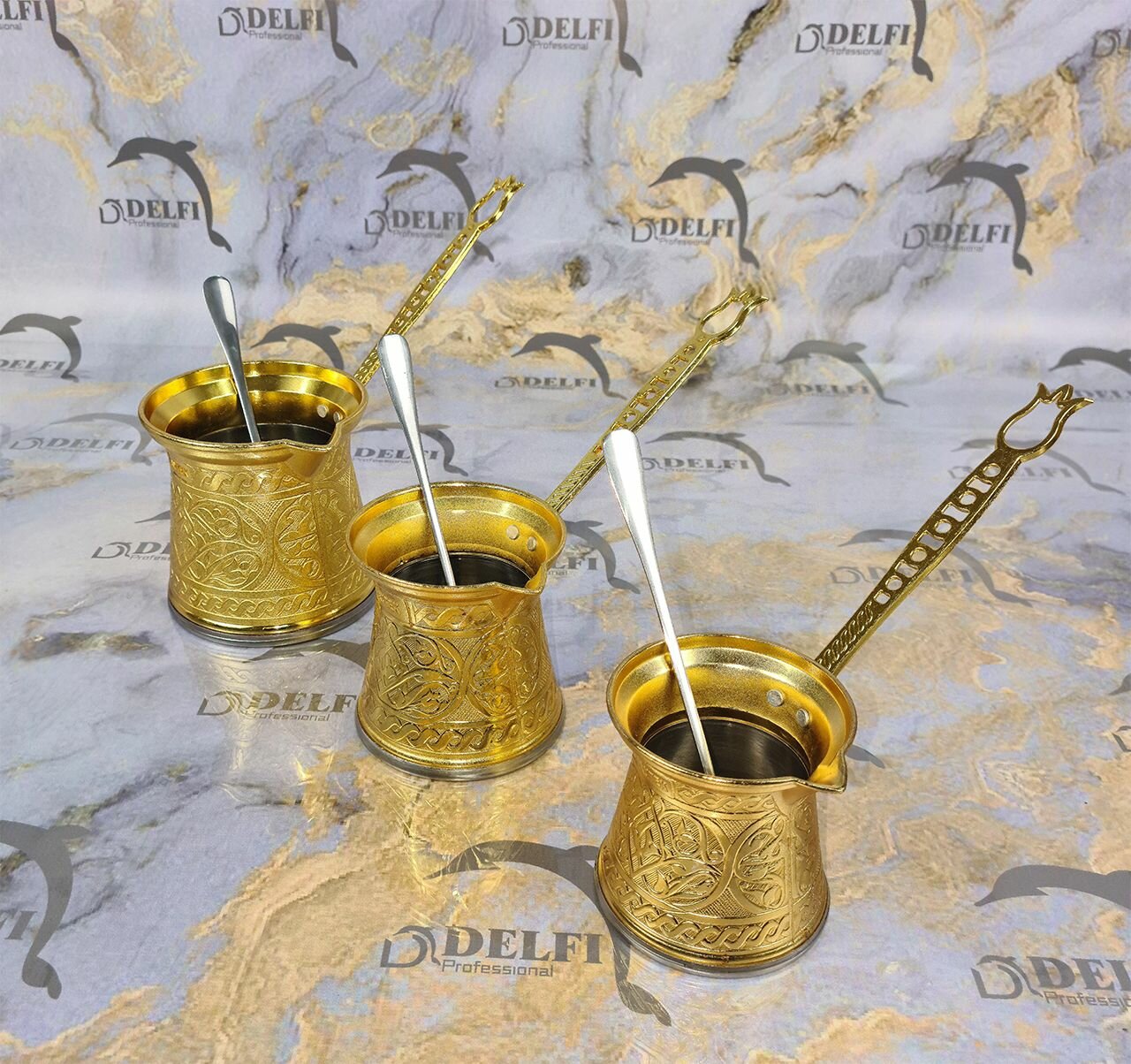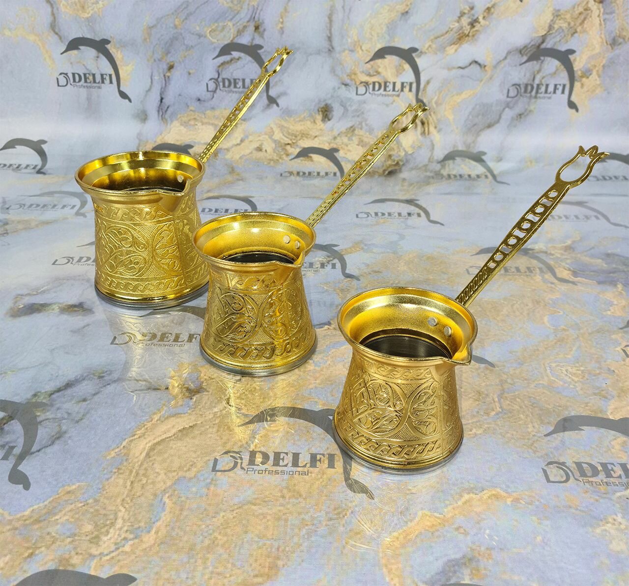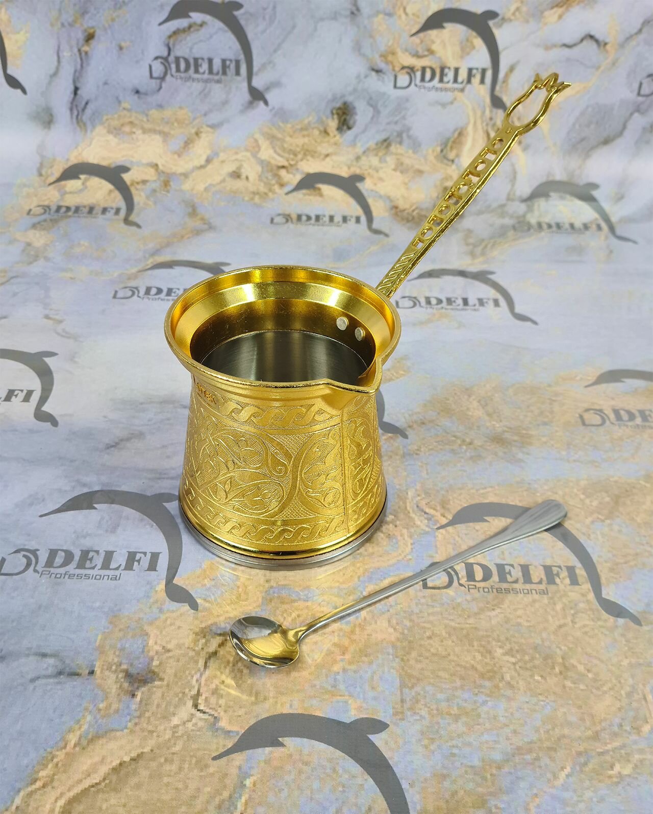 Внутренняя часть турки изготовлена из пищевой нержавеющей стали. При приготовлении напитка диаметр конфорки должен соответствовать или быть чуть меньше диаметра дна турки, чтобы языки пламени не попадали на стенки корпуса посуды, а нагревали только дно. Готовить кофе нужно на слабом огне. Наша турка имеет уникальный дизайн с цилиндрической формой и широким горлышком. Благодаря этому, вода быстро нагревается и поддерживает оптимальную температуру для приготовления кофе. ZAMAK - это прочный и устойчивый к коррозии турецкий материал, который используется для производства различных изделий, он представляет собой сплав меди и цинка. Не упустите возможность приготовить настоящий кофе, полный аромата и вкуса. Приобретайте нашу турку и наслаждайтесь идеальным кофе каждый день.