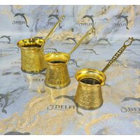 Восточная турка - джезва из меди ярко подчеркивает вкус и аромат кофе за счет равномерной теплопроводности и нагрева. Приготовление кофе в турке - один из самых старинных методов заваривания кофе, рецептов кофе по-восточному очень много. Поэтому медная турка для варки кофе по турецки, самая популярная среди кофеманов. Турецкая посуда не зря считается одной из красивейших в мире, а турецкий кофе одним из вкуснейших.