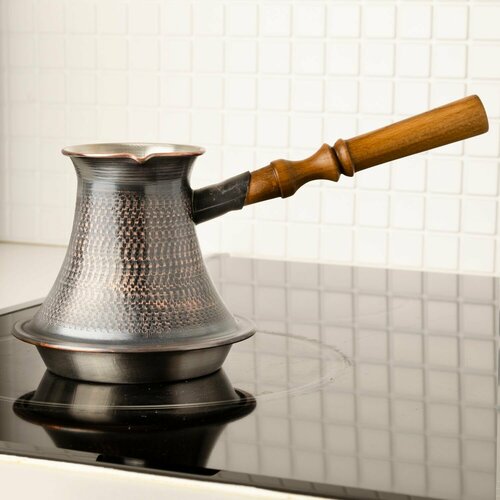 Джезва ручной работы с деревянной ручкой для индукционной плиты 750 мл.