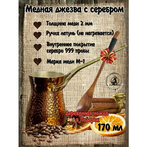 Каждая турка выкована вручную из цельного листа меди толщиной 2 мм, а внутри покрыта слоем серебра 15 мкм.