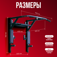 Этот турник черного цвета, что делает его универсальным для любого интерьера. Он также доступен в красном, синем и черном цветах. Вес турника составляет 9,4 кг, а длина перекладины - 90 см, ширина - 76 см, высота - 76 см. Расстояние между подлокотниками - 43 см.