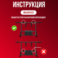 Турник изготовлен в России и имеет максимальную нагрузку до 250 кг. Он оснащен 8 хватами и комплектуется подлокотниками, крепежом, рукоятками, ручками мягкими, болтами, подспинником, перекладиной, трубой с плашкой, Г-образным профилем, саморезами, кронштейном, заглушками, трубой поперечной и гайками.