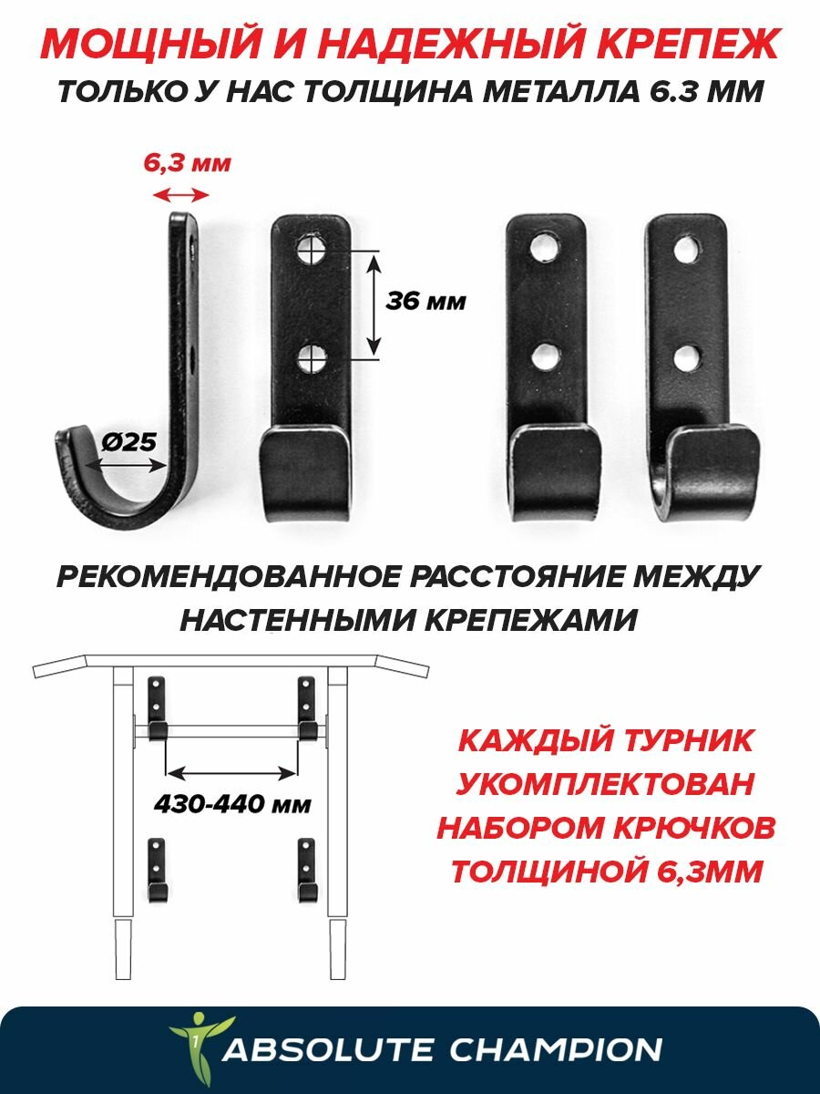 Турник Центрл Спорт для занятий фитнесом и спортом заряжен успехом! Специально для вас, разработан действующим чемпионом Мира профессиональным боксёром Андреем Сироткиным и фабрикой спорттоваров Absolute Champion. Настенный тренажер для домашних тренировок три в одном (кроссфит) эффективен для развития разных групп мышц. Спортивный тренажер производится из надёжного профиля 30*30. Для комфортных занятий и тренировок мы сами изготавливаем ручки из улучшенной резины. Не скользят, просты в уходе, удобны в эксплуатации, прослужат долго! В усиленных брусьях 3в1 для дома спинка плавающая, что позволит Вам комфортно выполнять упражнения на пресс. Подушки из износостойкой эко кожи, качественный поролон. На турнике мультихват можно выполнять комплекс упражнений на все группы мышц - подтягивания узким, широким и средним хватом; можно делать отжимания и упражнения на пресс. Вы проработаете мышцы спины, груди, рук и пресса, без посещения уличных площадок и тренажёрных залов! Все турники проходят тройной контроль качества и при испытании выдерживает нагрузку более 300 кг, это подтверждено испытаниями и на видео в карточке товара. Мы одни из немногих, делаем настенные крепления (крючки, крепеж на стену) для оборудования из твёрдого металла толщиной 6,3мм (у большинства конкурентов 3-4мм), что позволит вам быть уверенным на 100%, что турник будет надежно зафиксирован к стенке. Занимайся на турниках и качайтело! На нашу продукцию гарантия 1 год. Также предлагаем аксессуары для бокса и тренировочный инвентарь: эспандеры, турник над дверью, треххватные и с лестницей, качели детские, груши боксерские подвесные взрослые с подвесом на потолок или уголок, канат, гимнастические кольца и петли, лесенка для детей, для улицы, sport в дверной проем. Отличный подарок для каждого, это практично, и он будет всегда полезен pro для здоровья, сделайте подарок себе или своим близким уже сегодня и на Новый Год! Покупайте турники от Absolute Champion заряженные энергией успеха Чемпионов Мира!