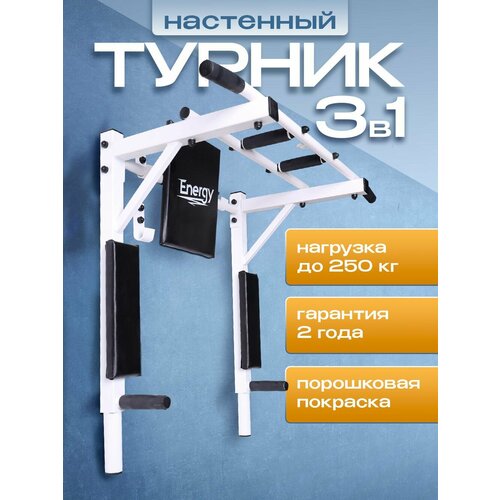 Турник брусья 3в1 "Energy" – идеальный инвентарь для тренировок в домашних условиях. Этот многофункциональный тренажер сочетает в себе функции турника, брусьев и скамьи для пресса, что делает его отличным выбором для создания фитнес уголка прямо у вас дома.