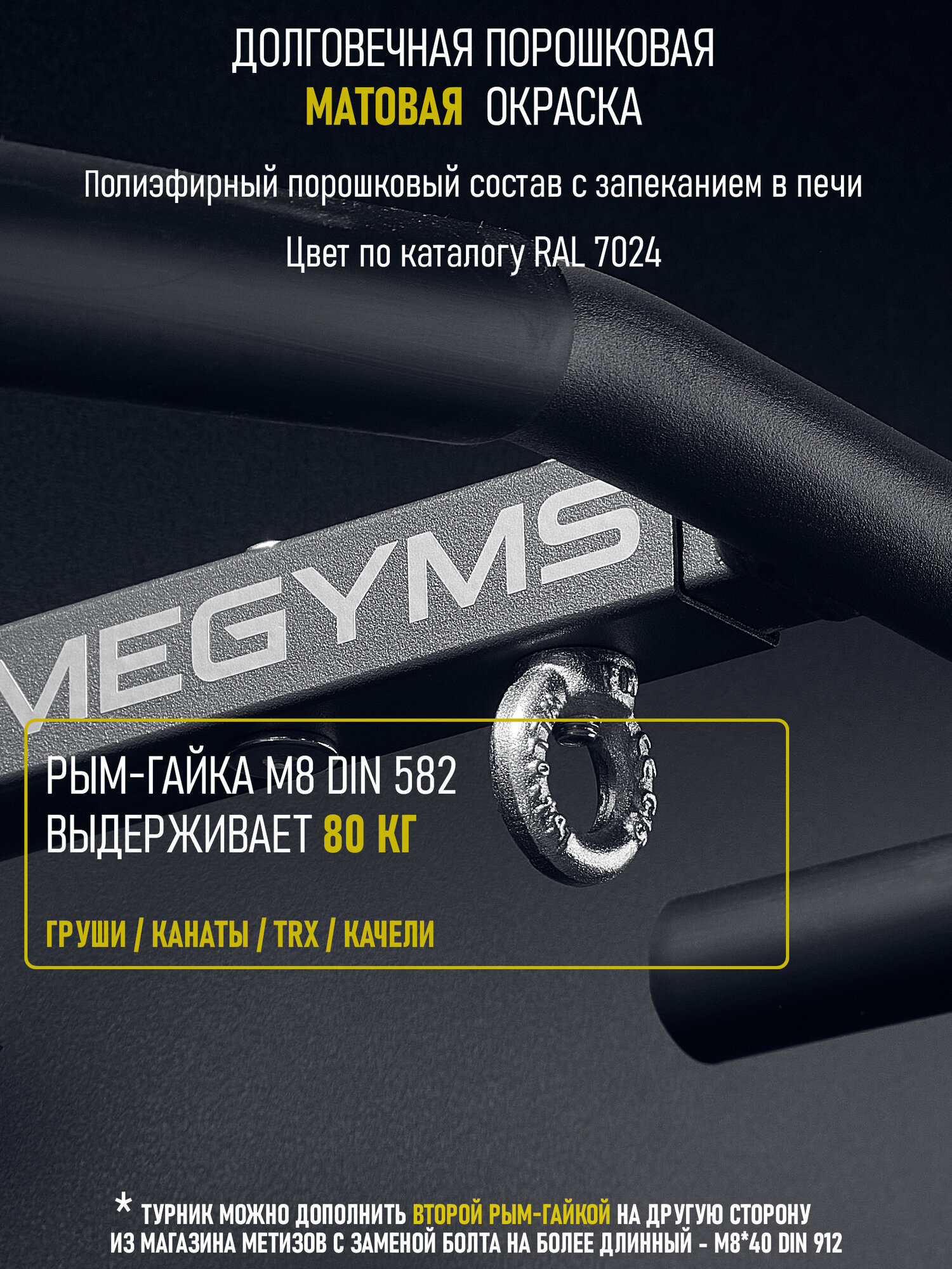 | Дополнительная информация | материал: сталь, вынос турника от стены регулируемый: 22,5-28,5 см. |