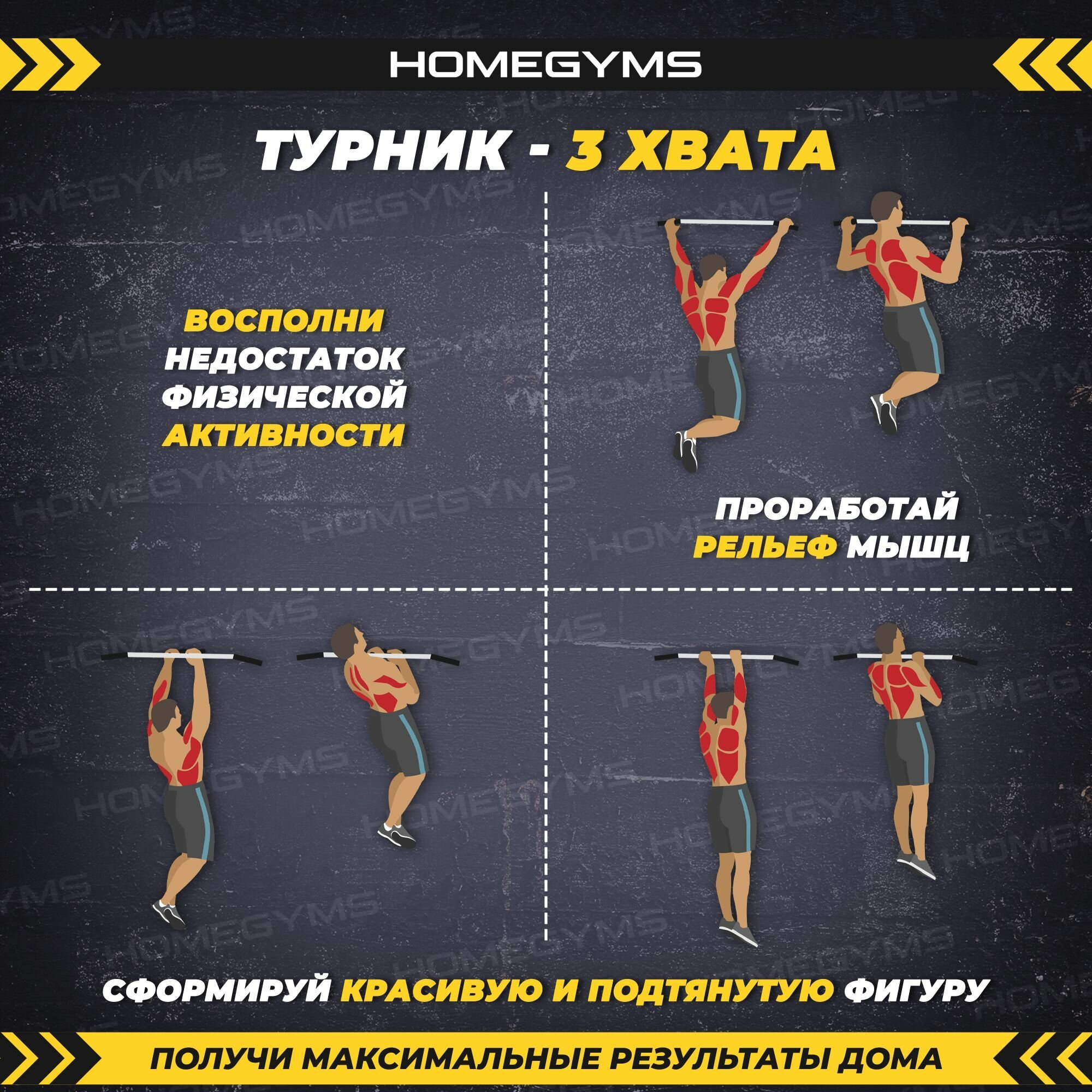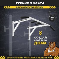 Навесной турник 3 хвата для Шведской стенки от бренда HomeGyms позволит тебе и твоим близким заниматься спортом в удобное время.
