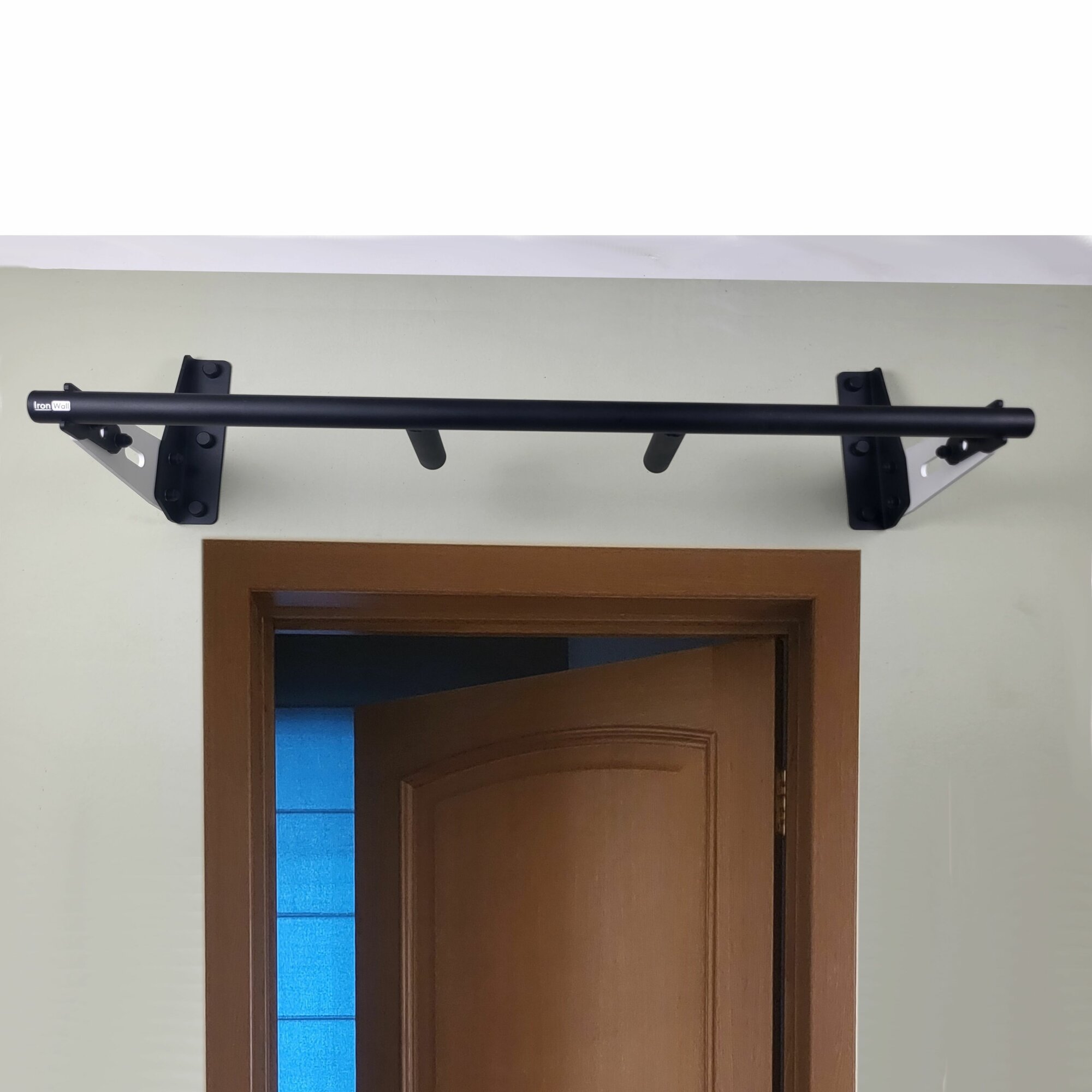 Купить Турник наддверный IronWall D0 2-08 Classic с чёрной перекладиной и белыми выносными пластинами с доставкой по всей России.