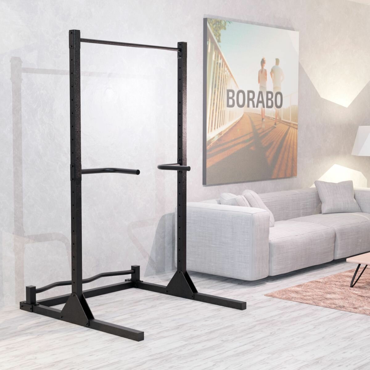 Мобильная функциональная стойка Борабо с брусьями и W-образной перекладиной для отжиманий - надежный и практичный тренажер для всех, кто ценит качество и предпочитает домашние тренировки.