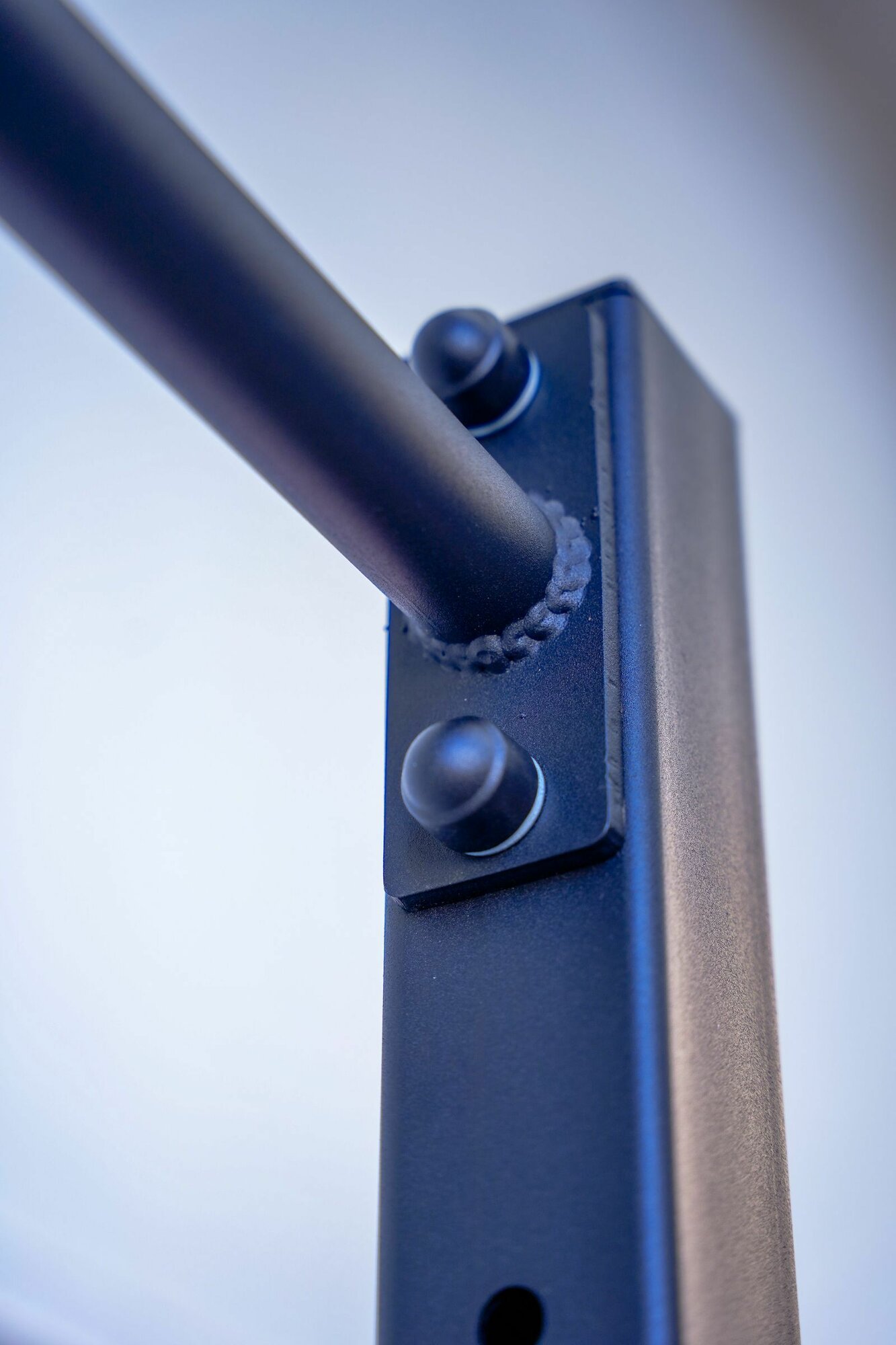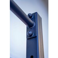 Точки крепления расположены по всей высоте стойки с шагом 10 см, что позволяет  регулировать высоту перекладины под любой рост.