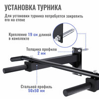 Для установки турника потребуется закрепить его на стене, крепление 19 см длиной. Комплект крепежа в комплекте.