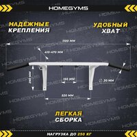 Купить Турник настенный HOMEGYMS, усиленная конструкция 3 хвата, белый с доставкой по всей России.