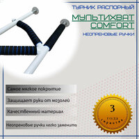 Распорный турник в проем для удобства и более надежного хвата, защиты ладоней и комфорта в тренировке дополнен неопреновыми ручками. Неопреновая ручка надежно фиксируется на турнике, не проворачивается и обладает противоскользящим эффектом. Она утолщает диаметр турника на 3-4 мм. Самые мягкие неопреновые ручки чаще всего выбирают для подростков и девушек. Для того, чтобы легко надеть неопреновые ручки, необходимо окунуть их воду. Неопрен набухнет и станет более мягким, после высыхания он примет прежнюю форму.