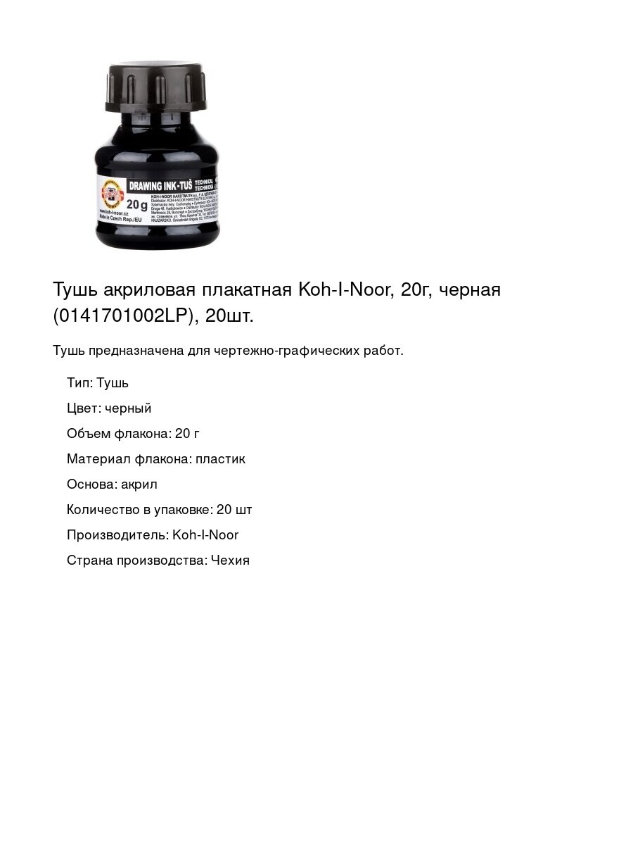 Купить Тушь акриловая плакатная Koh-I-Noor, 20г, черная (0141701002LP), 20шт. с доставкой по всей России. Тушь акриловая плакатная Koh-I-Noor, 20г, черная (0141701002LP), 20шт.: сравнение цен, характеристики, фото, актуальное наличие и цены.