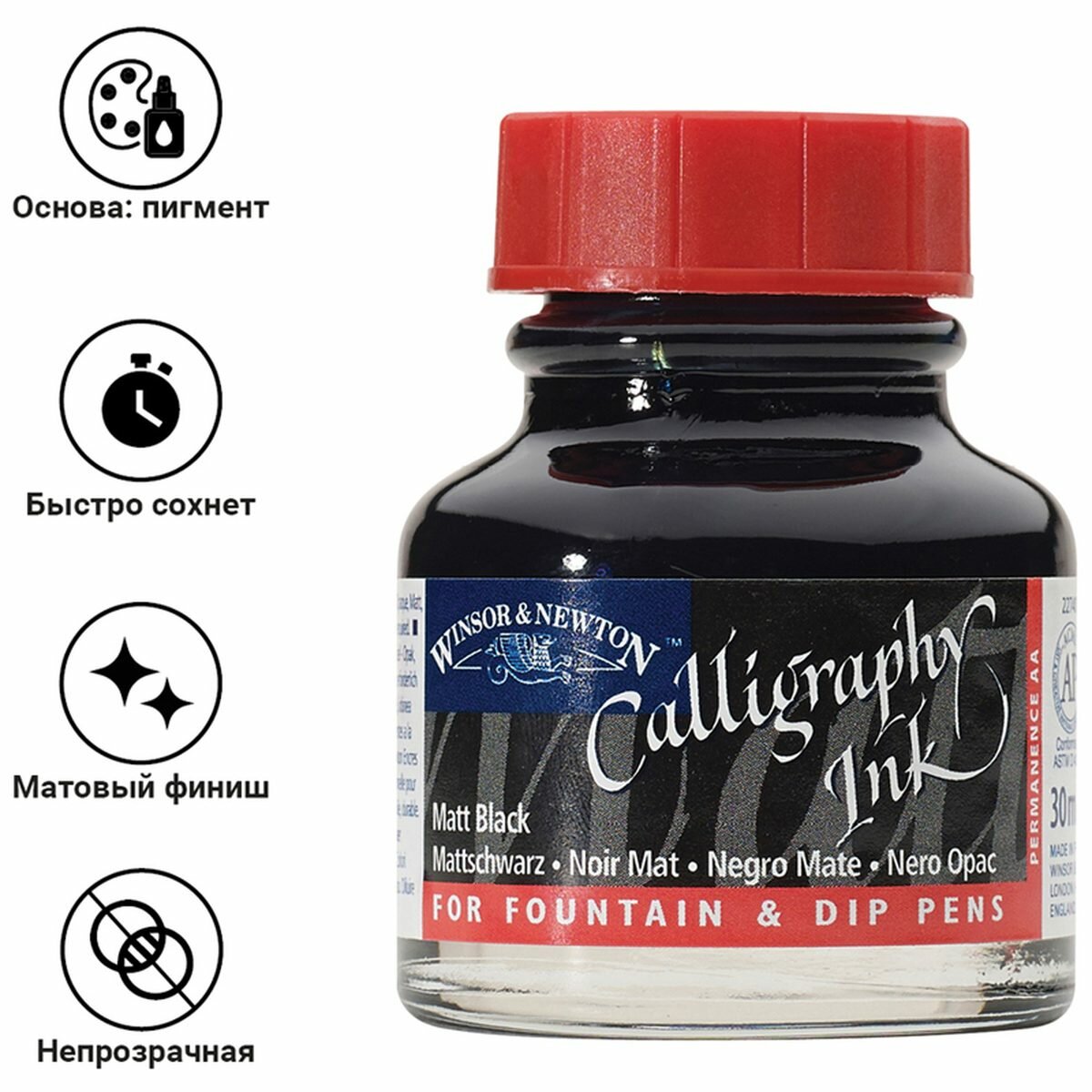 Тушь Winsor&Newton для каллиграфии (красная крышка), 30мл, черная матовая (1110030), 3шт.: сравнение цен, характеристики, фото, актуальное наличие и цены.