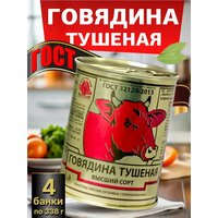 Тушенка белорусская Говядина ГОСТ высший сорт 4 банки по 338г: сравнение цен, характеристики, фото, актуальное наличие и цены.