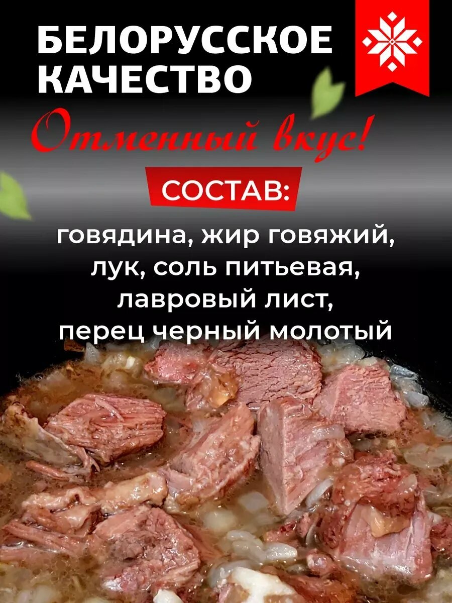 Белорусские продукты питания или тушенка Березовского мясокомбината, славятся своим высочайшим качеством. Это натуральный продукт, который давно зарекомендовал себя ярким вкусом. Эта консерва представляет собой высокобелковое мясо, которое можно использовать в различных блюдах: рагу, суп с горошком, крупы. Варианты употребления безграничны – от добавления в кашу до создания оригинальных бургеров или пиццы. Такие продукты спасают время на готовку, подходят под любой гарнир. Мясо – природный источник натурального коллагена. Эта мясная продукция изготавливается брендом № 1 в Белоруссии по советской технологии, с использованием свежей говядины, без жил, пленки и хрящей, имеет сертификат качества. Консервы береза содержат отборное говяжье мясо, ароматные специи и превосходный бульон без усилителей вкуса. В процессе консервирования используются высококачественные ингредиенты, а процесс изготовления соответствуют требованиям ГОСТ, что сохраняет все соки, аминокислоты и создает тот самый премиум вкус из детства. Конечно, продукт беларуской кухни сложно назвать низкокалорийным, это не колбаса, он содержит только мясо превосходного качества. Мягкую говядину легко комбинировать с другими продуктами: зеленым горошком, гречей, морковью или положить на хлеб как паштет намазка. Тушенка говяжья весом 338г из рб, с закладкой мяса 86% - это кулинарный шедевр, который содержит белок. Этот выбор лучше, чем сосиски. Она имеет тот узнаваемый вкус еды из ссср (совок). Консервированное мясо можно смело взять с собой на дачу, в поход, в поездки на автомобиле в качестве готового перекуса в коробке для туризма. Также это незаменимый сухпаек. Ведь ничто так не восполняет силы, как вкусный сухой паек из богатой белком говядины тушеной. Этот набор батькин резерв выручит, когда нужно быстро приготовить разные штуки, домашнее блюдо, борщ, пельмени или блинчики. Оно долго хранится без необходимости в охлаждении, что делает его палочкой выручалочкой для рюкзака туриста. Тушенка наше все – она открывает множество возможностей в кулинарии. Любимые макароны по-флотски получаться особенно вкусными. Так сытный обед или ужин готов. С нашей тушенкой из баночки даже пиццу можно приготовить дома! Просто возьмите уже готовое тесто или основу для пиццы или лаваш, нанесите томатный соус или пасту. Равномерно распределите волокна мяса, добавьте овощи. Посыпьте всё сыром. Запекайте пиццу в духовке 20 минут. Консервы могут также быть основой для экспериментов с рецептами. Добавление мясных языков в салаты придаст им особую пикантность. Данная штучка станет отличным вариантом, как для повседневного меню семьи, так и для праздничного стола: попробуйте сделать холодец с добавлением этого мяса — получится невероятно вкусно! Она может стать отличным смешным подарком, как женщинам, так и мужчинам, ведь такой деликатес порадует любого гурмана. Не упустите возможность попробовать данный экстра продукт. Наш магазин с бакалеей сделает доставку быстро и качественно.
