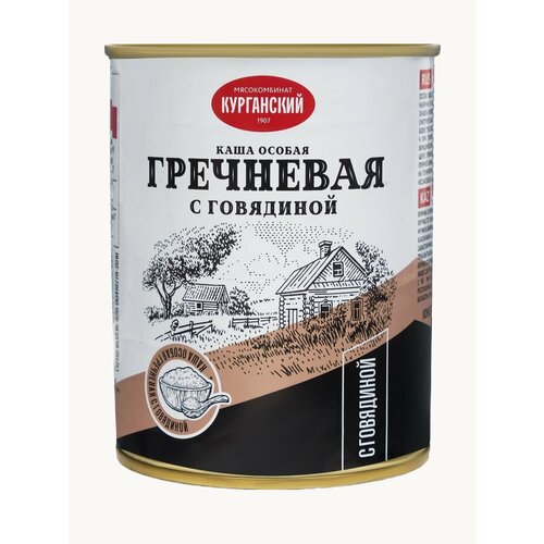 Вкусное, сытное готовое блюдо в практичной упаковке. Подходит для употребления как дома, так и на природе - удобно взять в поход. В составе только натуральные ингредиенты и ничего лишнего. Курганский мясокомбинат — один из крупных производителей тушёнки и мясных консервов.