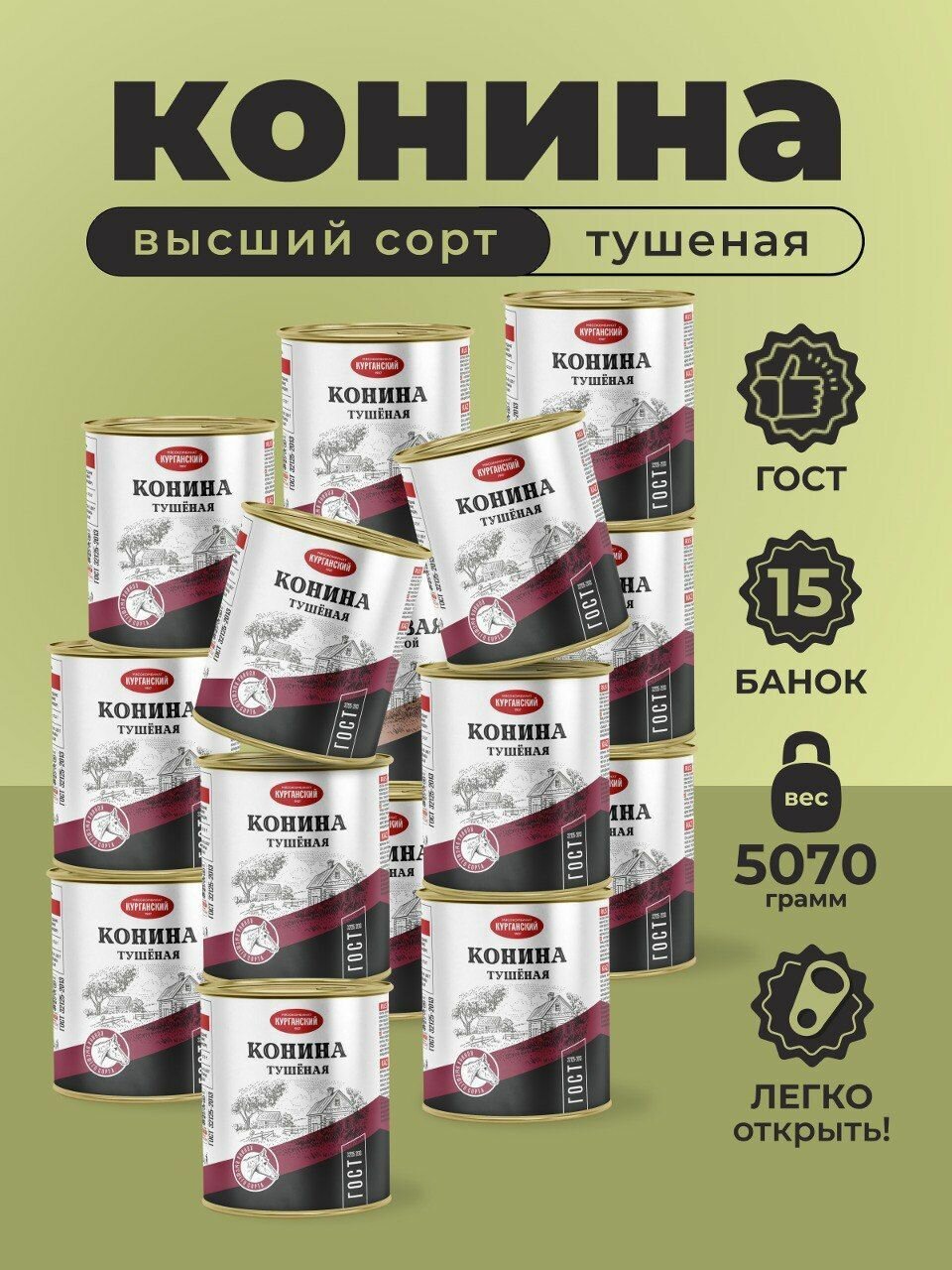 Тушонка - идеальное решение для тех, кто дорожит своим временем, здоровьем и качеством продуктов. Попробуйте конину тушеную в консервах 325 гр. по госту, и Вы поймете, что это совершенно новое слово в кулинарии. Настоящая конина тушеная - это самый полноценный вкус, который вы можете попробовать. Покупайте отличные мясные консервы у нас прямо сейчас и наслаждайтесь качеством!