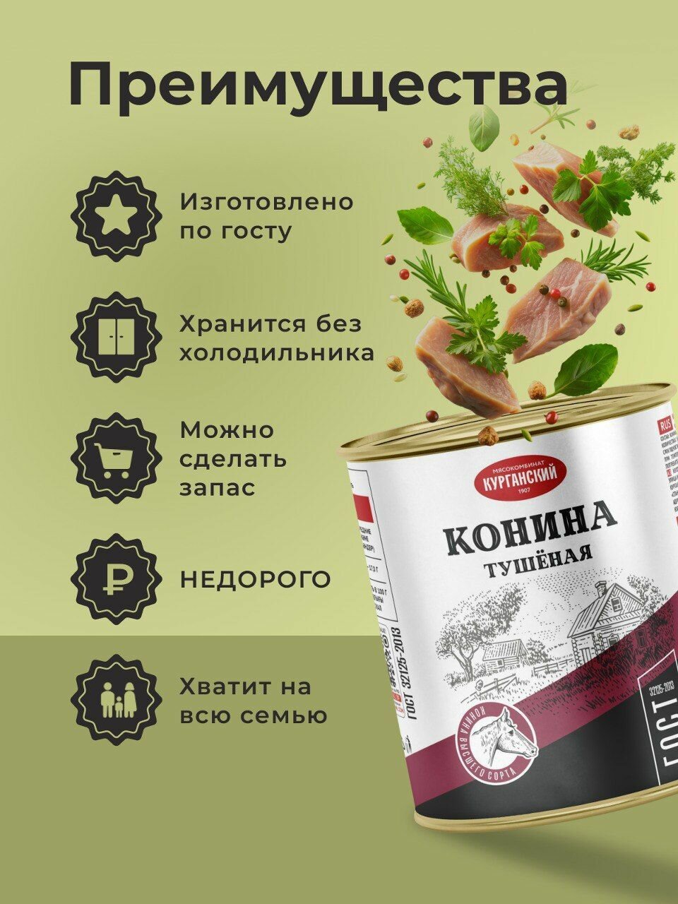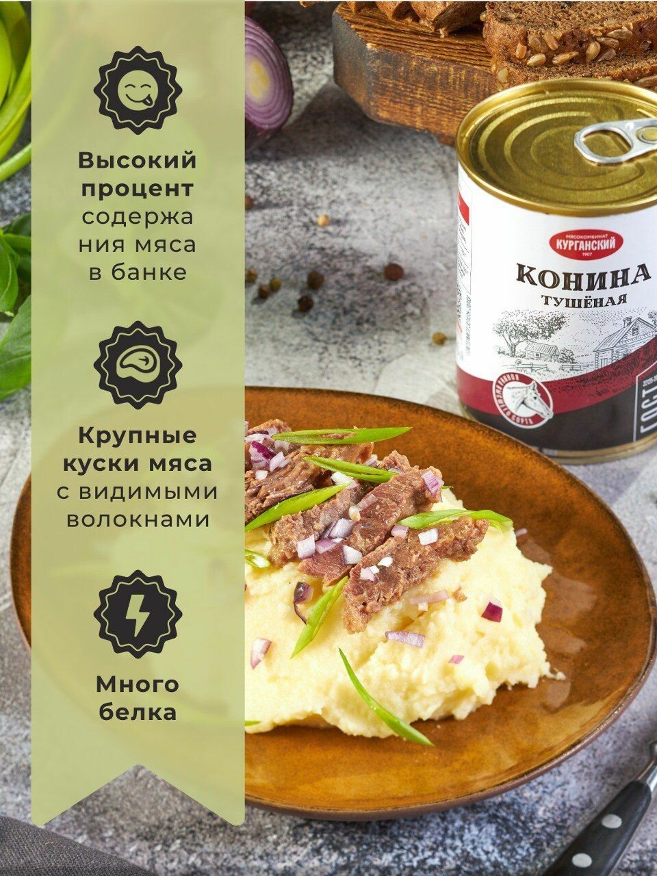 Насыщенный аромат и вкус, отличная сочетаемость с множеством продуктов, а еще - удобное, быстрое и возможность долгого хранения. Всё это - в консервированной конине тушеной 325 грамм по госту, которую вы можете приобрести у нас.