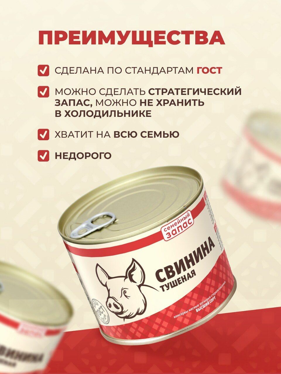Свинина тушеная - это вкусное и полезное мясное блюдо, которое можно добавить в свою домашнюю коллекцию консервов для семейного запаса. Тушеная свинина представляет собой нежное и сочное мясо, приготовленное по особому рецепту, чтобы сохранить все его полезные свойства и неповторимый вкус. Тушенка из свинины - отличный выбор для тех, кто ценит качественные консервы и хочет насладиться настоящим мясом в любое время года. Это блюдо прекрасно подходит для приготовления различных блюд - от сэндвичей до супов и гарниров. Свинина тушеная представляет собой идеальный баланс между питательностью и вкусом. Благодаря тщательной обработке мясо становится мягким и ароматным, что делает его незаменимым компонентом в рационе любого гурмана. Не упустите возможность попробовать настоящую тушенку из свинины и порадовать себя и своих близких деликатесом высочайшего качества. Попробуйте это мясное блюдо и оцените все его вкусовые качества. Приобретайте свинину тушеную прямо сейчас и наслаждайтесь ее потрясающим вкусом уже сегодня!