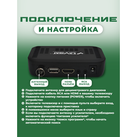 | Комплектация | Приставка, пульт, блок питания, шнур AV, батарейки |