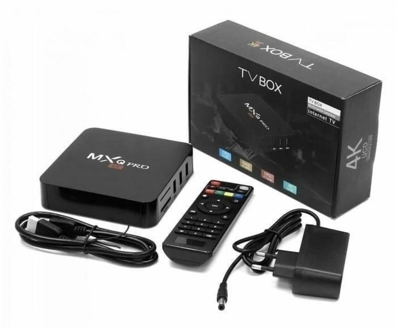 Комплектация: приставка, пульт ДУ, блок питания 2A, HDMI кабель, инструкция, упаковка