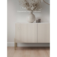ТВ тумба более 200 см произведена с использованием системы push-to-open для легкого открывания фасадов нажатием. Тумба для телевизора выполнена без видимых следов крепежа и состоит из 4-х закрытых секций для удобного хранения.