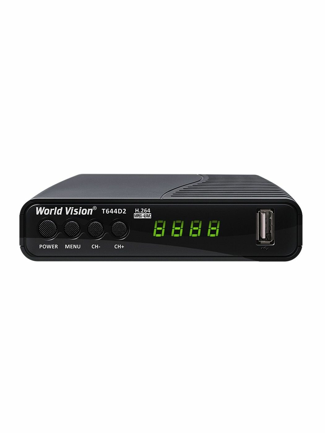 В телеприставке World Vision T624 D2 установлен хорошо зарекомендовавший себя тюнер MaxLinear MXL608, обладает хорошей чувствительностью приёма DVB-T/T2 и DVB-C сигнала, в результате пользователь получает стабильность трансляции и качественное цифровое изображение на экран своего телевизора. Как и во всех новых моделях цифровых телеприставок World Vision, присутствует возможность подключения устройства к беспроводной сети через внешний USB Wi-Fi адаптер, поскольку не все модели адаптеров подходят для реализации такого вида соединения, то подробная информация указана в характеристиках на устройство. При подключении к сети интернет пользователь получит дополнительный программный функционал, это обновление программного обеспечения по сети интернет, информация о прогнозе погоды на неделю в приложении "Погода", плеер IPTV для просмотра интернет трансляций ТВ каналов, онлайн-кинозал Мегого с огромной медиатекой фильмов, сериалов и мультфильмов, RSS новости. Модель World Vision T624 M2 после подключения в USB разъём накопителя памяти, поддерживает всевозможные PVR функции, стандартная немедленная запись телепрограммы, запись по таймеру установленному в ручном режиме или через телегид расписания по программам, отложенный просмотр таймшифт.