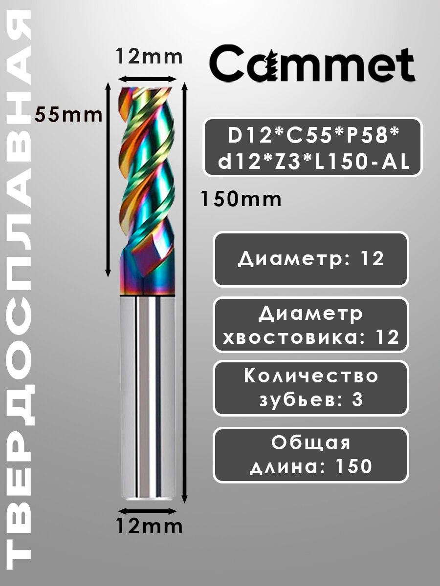 Твердосплавная фреза концевая D12*C55*P58*d12*Z3*L150-AL по алюминию 12мм, монолитная для ЧПУ с покрытием DLC: сравнение цен, характеристики, фото, актуальное наличие и цены.