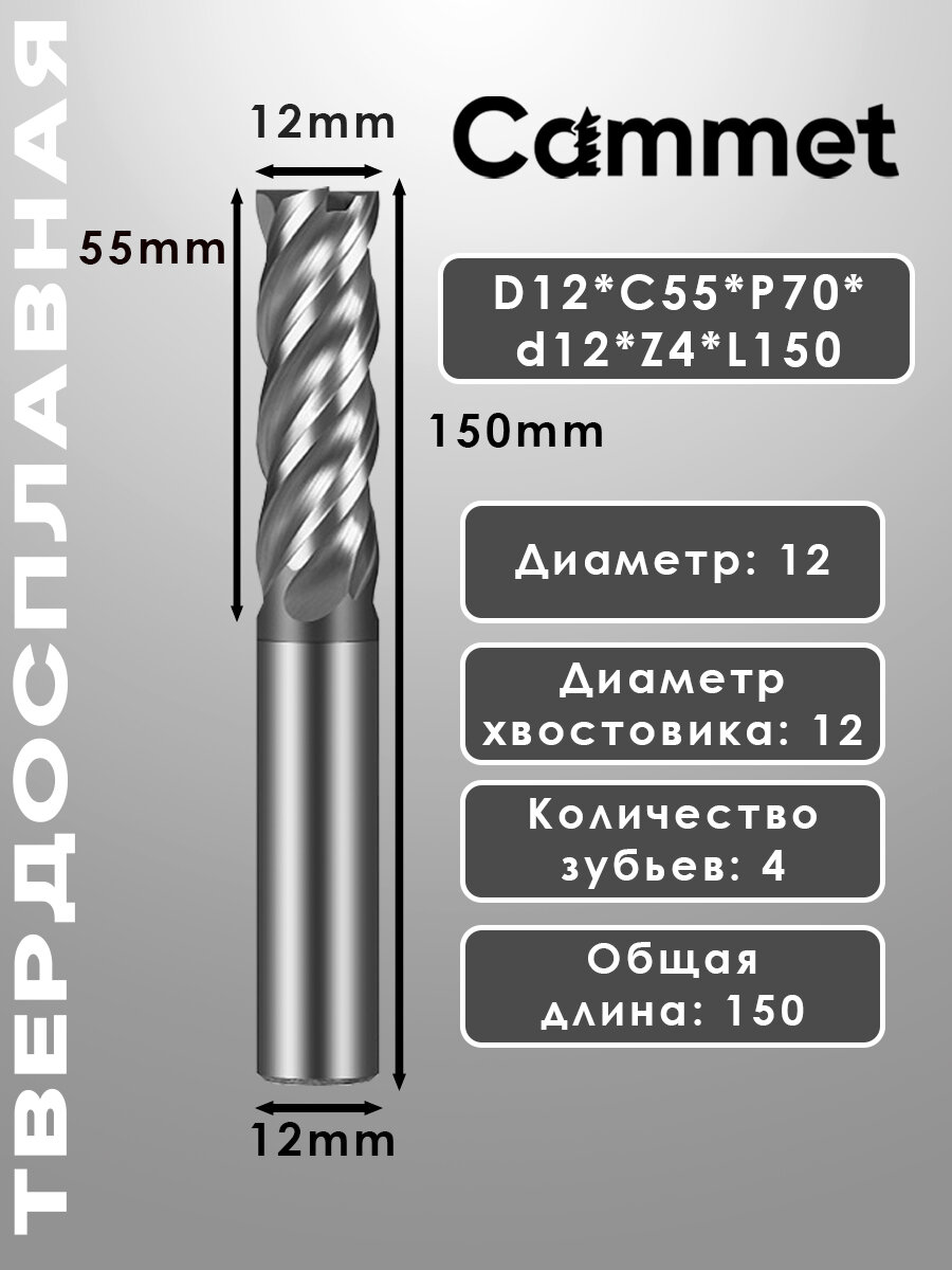 Твердосплавная фреза концевая D12*C55*P70*d12*Z4*L150 по стали монолитная повышенной твердости 12мм, для ЧПУ: сравнение цен, характеристики, фото, актуальное наличие и цены.