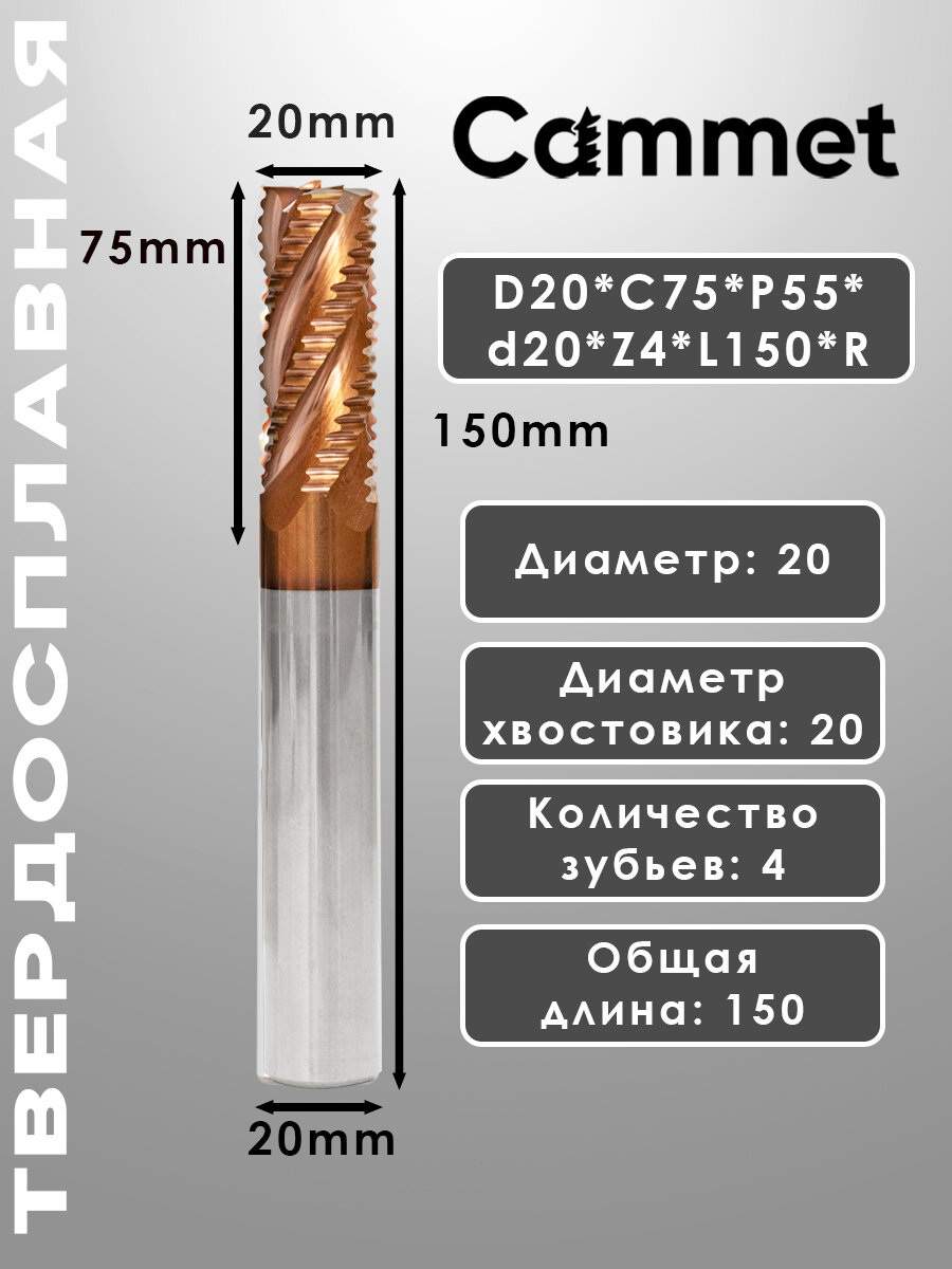 Твердосплавная фреза концевая D20*C75*P55*d20*Z4*L150*R черновая по стали монолитная 20мм, для ЧПУ: сравнение цен, характеристики, фото, актуальное наличие и цены.