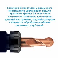 СФЕРИЧЕСКИЕ ФРЕЗЫ С ПОКРЫТИЕМ TISIN Для чистовой 3D-обработки сложных поверхностей Специальная двузубая радиусная конструкция с покрытием TiSiN обеспечивает высокое качество обработки криволинейных поверхностей. Оптимальны для финишных операций при работе со сталью, нержавеющей сталью и чугуном. КОНСТРУКТИВНЫЕ ОСОБЕННОСТИ: • 2 режущих зуба – оптимальный баланс между качеством и производительностью • Сферическая головка – идеальная геометрия для 3D-фрезерования • Усиленный состав из мелкозернистого твердого сплава • Оптимальный угол спирали 35° – плавное врезание ПРЕИМУЩЕСТВА ПОКРЫТИЯ TISIN: • Сниженное трение при обработке • Защита от абразивного износа • Повышенный ресурс инструмента ОСОБЕННОСТИ ПРИМЕНЕНИЯ: • Глубина резания Ap зависит от требуемого качества поверхности • При обработке нержавеющих сталей обязательно использование СОЖ • Для достижения наилучшего качества поверхности уменьшайте подачу на зуб (fz) ОБЛАСТИ ПРИМЕНЕНИЯ: • Финишная обработка пресс-форм и штампов • 3D-фрезерование лопаток и импеллеров • Обработка сложных криволинейных поверхностей • Изготовление матриц и оснастки