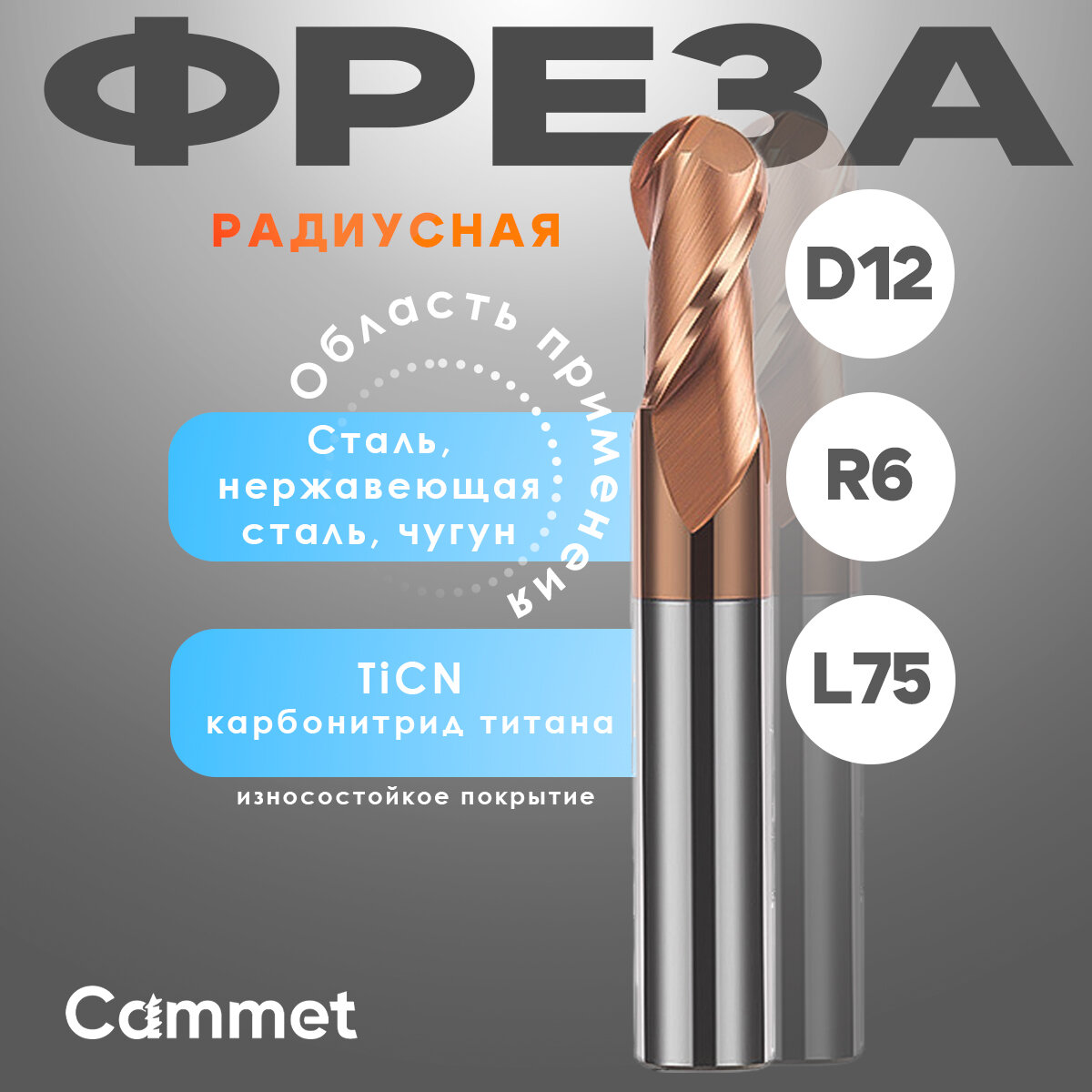 Твердосплавная фреза радиусная D12*R6*C24*P55*d12*Z2*L75 сферическая по стали монолитная: сравнение цен, характеристики, фото, актуальное наличие и цены.