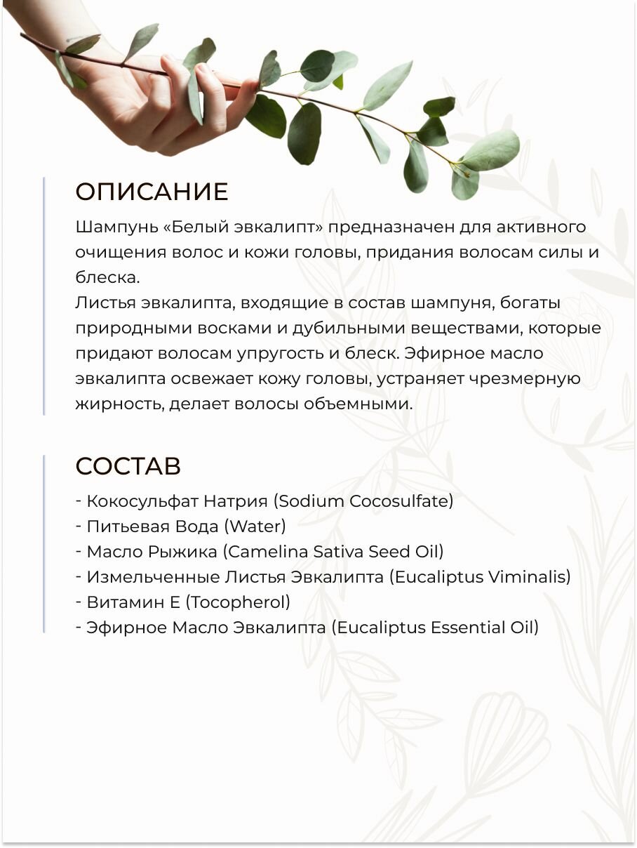 Твердый шампунь для волос женский "Белый эвкалипт" Сила и Блеск с витамин Е и эфирным маслом эвкалипта, 85 гр 3 шт