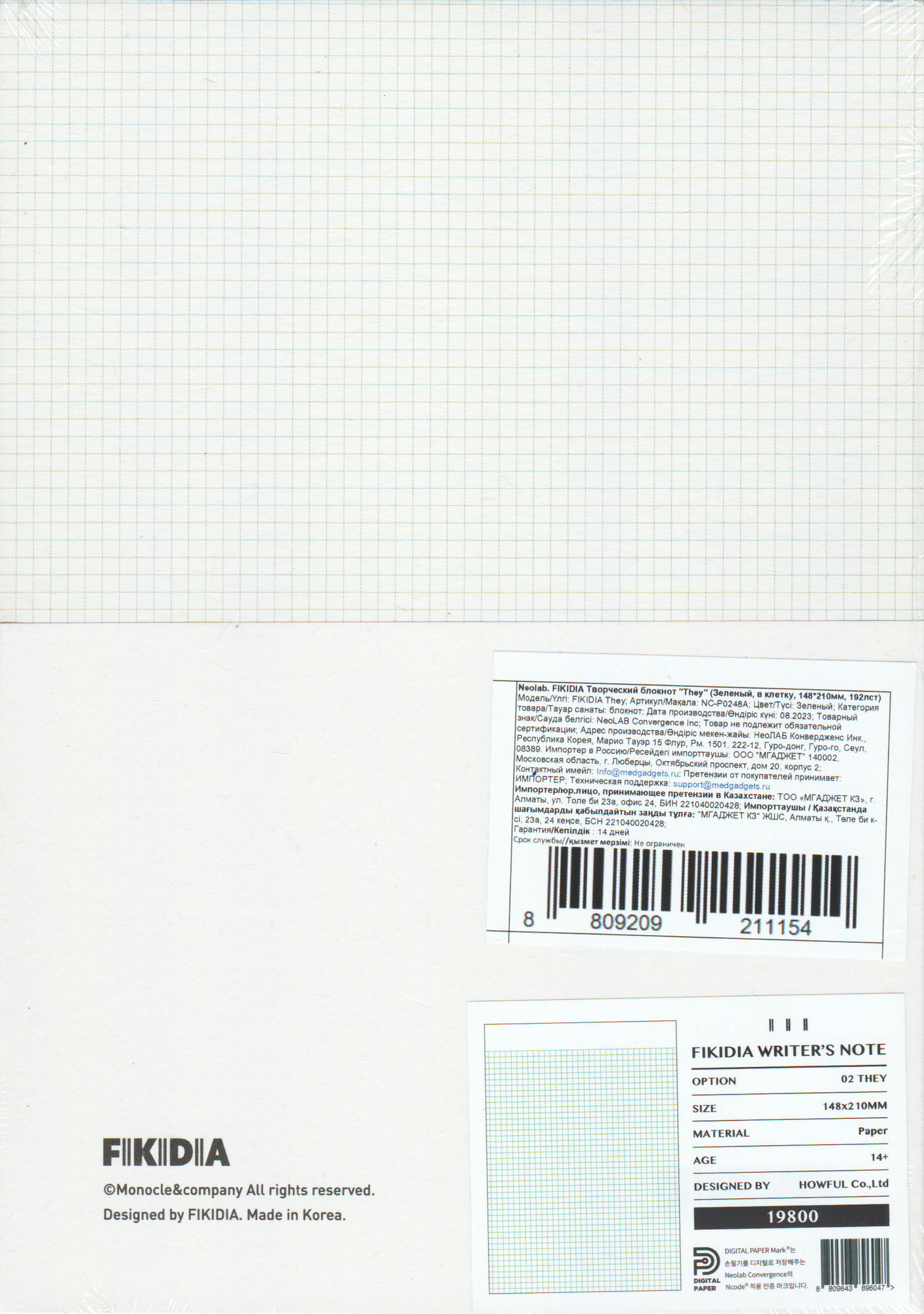 Творческий блокнот Neolab FIKIDIA «They» (Зеленый, в клетку, 148*210мм, 192лст): сравнение цен, характеристики, фото, актуальное наличие и цены.