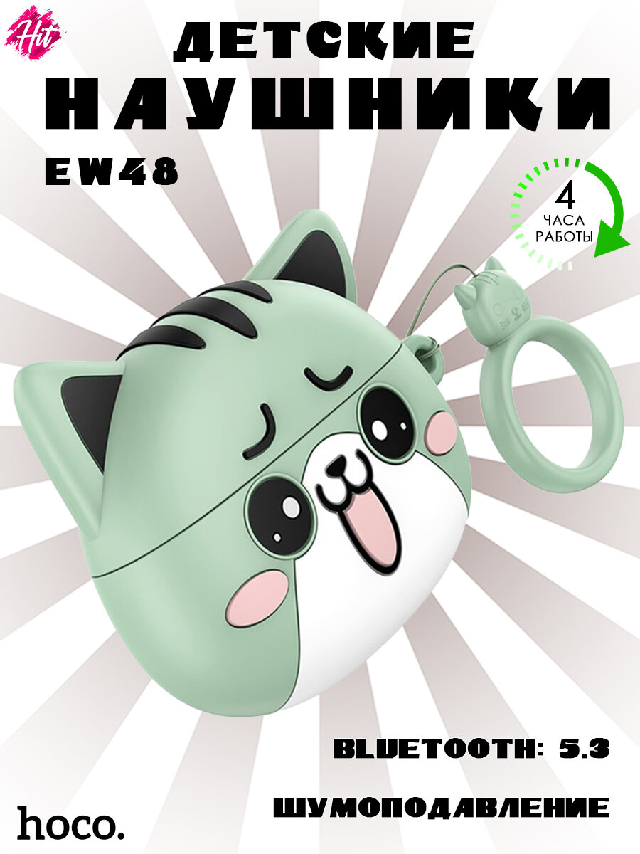 Наушники беспроводные TWS HOCO EW48 True, bluetooth V5.3, mint cat (Белый): сравнение цен, характеристики, фото, актуальное наличие и цены.