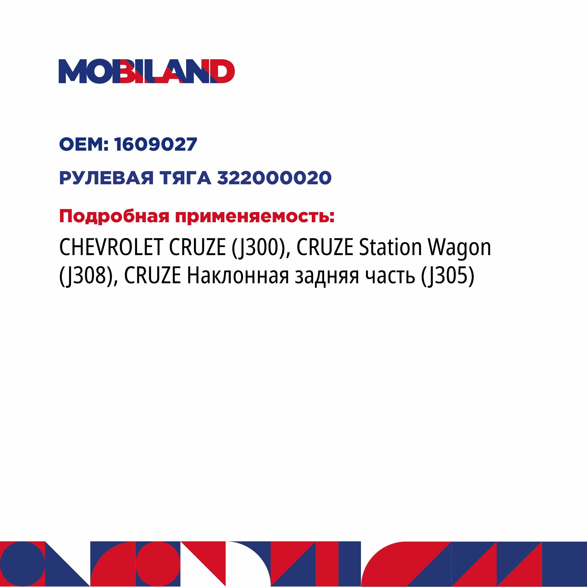 Купить Тяга рулевая левая/правая для а/м CHEVROLET CRUZE (J300), MOBILAND 322000020 с доставкой по всей России. Тяга рулевая левая/правая для а/м CHEVROLET CRUZE (J300), MOBILAND 322000020: сравнение цен, характеристики, фото, актуальное наличие и цены.